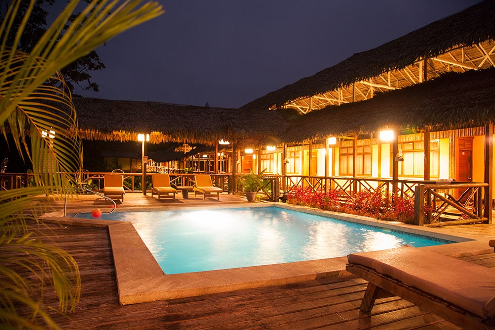 One more thing, if you take repellent with you, it won’t work. You can shower with it, and you still will come home with over 100 bites. Those little buggers are immune to it. At night, the only light you see is the perfect reflection of the moon in the lodge’s pool. You hear the sound of bats with their flapping wings and the lingering sweet smell of mapacho, the Shaman’s favorite sacred tobacco.